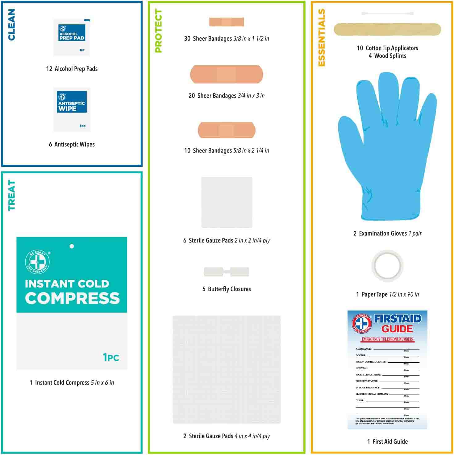 A 180 darab műanyag elsősegély-készlet egy dupla push-pull, sima kapcsolót és áttetsző kialakítást fogad el, így megkönnyíti az orvosi ellátás megtekintését. Ugyanakkor két emeleten vannak rekeszek, amelyeket különféle gyógyszerekhez lehet besorolni a könnyű hozzáférés érdekében.