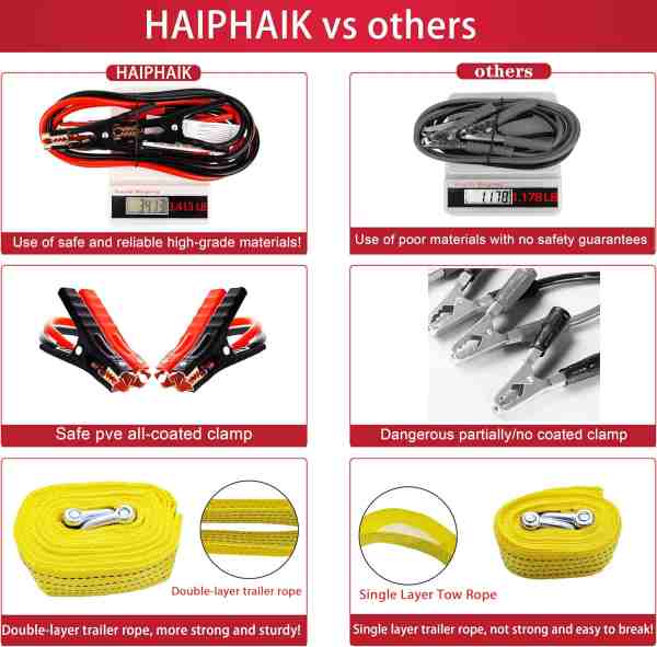 【Vészhelyzeti autós készlet】: A 2026-os Európa legjobb autós segélykészlete tartalmazza a nélkülözhetetlen szerszámosládát, többfunkciós lapátot, fejlett jumper kábeleket (11,8 láb), gumijavító szerszámokat, vonókötelet, túlélősípot, zseblámpát, kesztyűket és egyebeket. 124 darabjával maximalizálja biztonságát meghibásodások vagy balesetek esetén.【Akkumulátor-átkötőkábelek】: Az UL-tanúsítvánnyal rendelkező áthidaló kábelek kiemelkedő biztonságot és megbízhatóságot kínálnak a nem tanúsított termékekhez képest. Négy nagyméretű aligátorcsipesz biztosítja a biztos fogást, szigetelt gumibevonatú pofákkal. A megerősített kábeltest prémium PVC-anyagot tartalmaz, amely fagy-repedésállóságot, repedésgátlót és gubancmentes teljesítményt biztosít! A tartós akkumulátor-átkötőkábel megbízható társ az utazási és kempingezési kalandokhoz!【Autójavító szerszámkészlet】: Ez a praktikus szerszámkészlet 16 alapvető eszközt tartalmaz! Szépen tárolja a sürgősségi járműjavításhoz szükséges eszközöket: csavarkulcsokat, fogókat, kalapácsot, feszültségmérőt, mágneses laposfejű és Phillips csavarhúzókat, öt méretű imbuszkulcsot... Minden szerszámnak megvan a maga külön helye. Az erős műanyag tok ellenáll a nyomásnak. Kompakt és hordozható, bárhol tárolhatja!【Út menti járműbiztonsági készlet】: Alkalmas szedánokhoz, SUV-okhoz, terepjárókhoz, lakóautó-kempingekhez, teherautó-sofőrökhöz, motorosokhoz és más járműtípusokhoz. Mindig készülj fel a vészhelyzetekre! Ez a kompakt autós segélykészlet könnyen tárolható járművében, és alapvető eszközöket tartalmaz a gondtalan utazáshoz. Tökéletes meglepetés ajándék az új autótulajdonosok vagy a felkészületlen sofőrök számára.【Hordozható összecsukható lapát】A praktikum, a sokoldalúság és a biztonság egyesítése: lapátpenge, fűrészfogak, sörnyitó, csákány, körömhúzó, kapa, iránytű. Teljesen kinyújtott hossza: 18 hüvelyk. Kompaktan összecsukható, így könnyen elfér a táskában. Vészhelyzetben átáshatja a talajt, hogy kiszabadítsa a járművet, vagy betörheti az ablakokat a meneküléshez. Ha bármilyen problémát tapasztal a termékkel a vásárlás során, kérjük, azonnal lépjen kapcsolatba velünk. Segítséget nyújtunk! Elkötelezettek vagyunk a vásárlói élmény fokozása mellett!.
