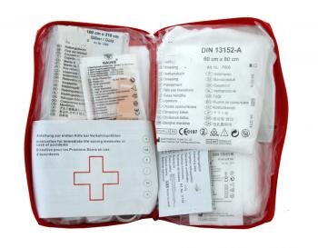 A DIN 13164 szabvány szerinti elsősegélynyújtó készlet „elsősegély-készlet közúti járművekhez”. Kifejezetten a következőkhöz készült: