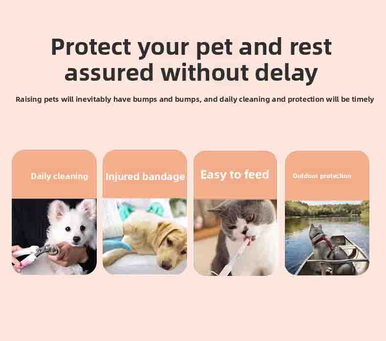 A PET elsősegély -orvosi táska 99 tartozékot tartalmaz, hogy a macskák és a kutyák különféle vészhelyzeteivel foglalkozzon. A nylon szövet tartós, és a belső táska átlátszó anyagot használ, hogy megkönnyítse a lejárt tárgyak megtalálását és cseréjét.
